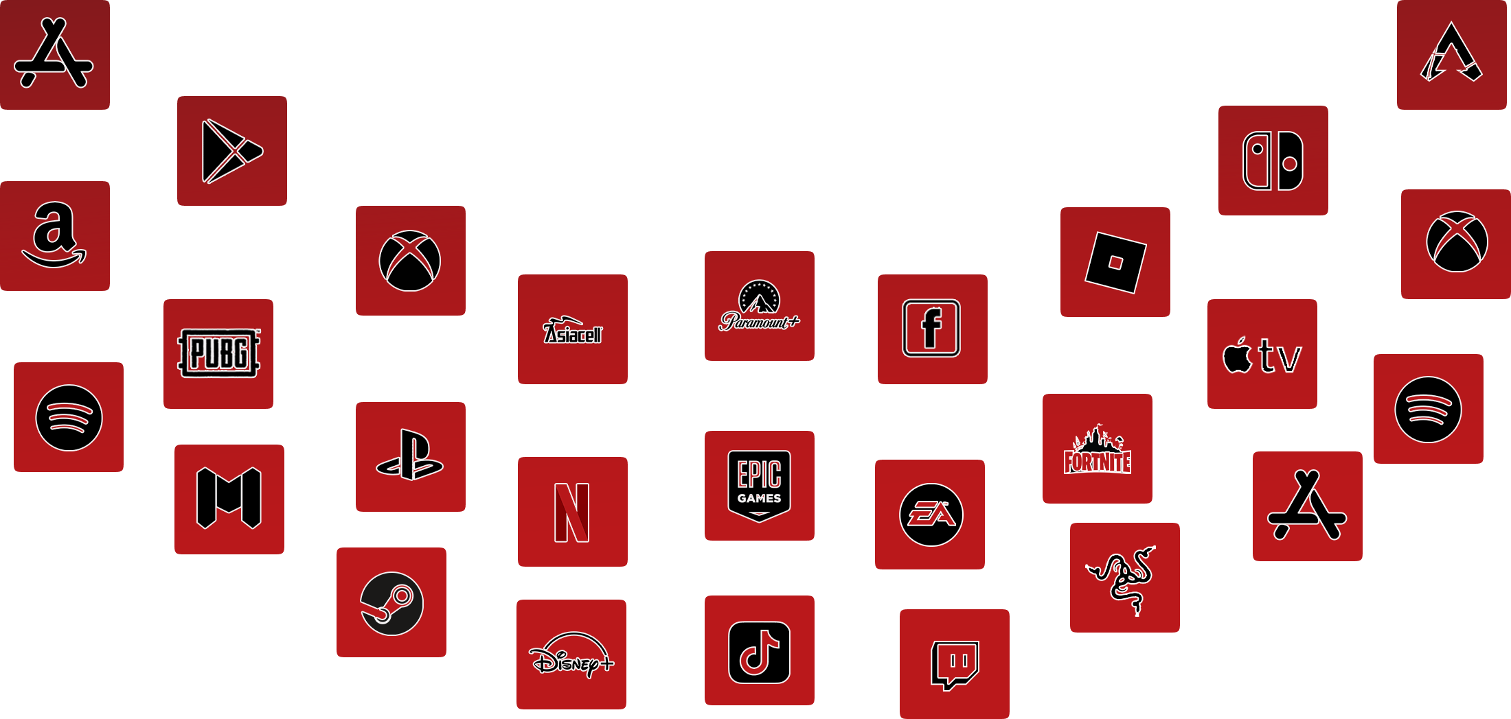 نوفر كروت للاشتراكات الشهرية والسنوية لخدمات مثل Netflix، Spotify، Disne +، وغيرها من منصات البث الترفيهي.